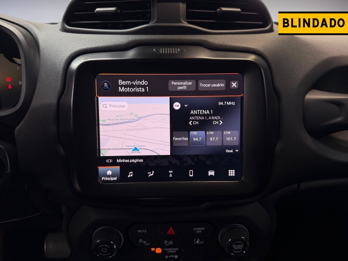 O Jeep Renegade 1.3 Flex S 2022 possui motor T270 1.3 turbo flex de 185 cv (etanol) e 27,5 kgfm de torque, câmbio automático de 9 marchas, tração 4x4 com seletor de terreno, e suspensão independente. Outras especificações incluem rodas de 19 polegadas, multimídia com tela de 8,4 polegadas, painel digital de 7 polegadas e ar-condicionado dual-zone.