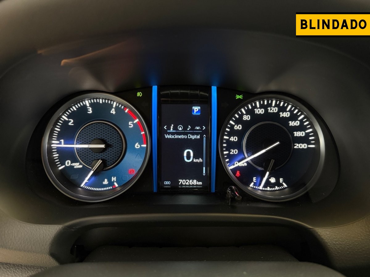Segurança: Toyota Safety Sense (Pré-colisão, alerta de mudança de faixa, ACC), 7 airbags, freios a disco ventilado nas 4 rodas.