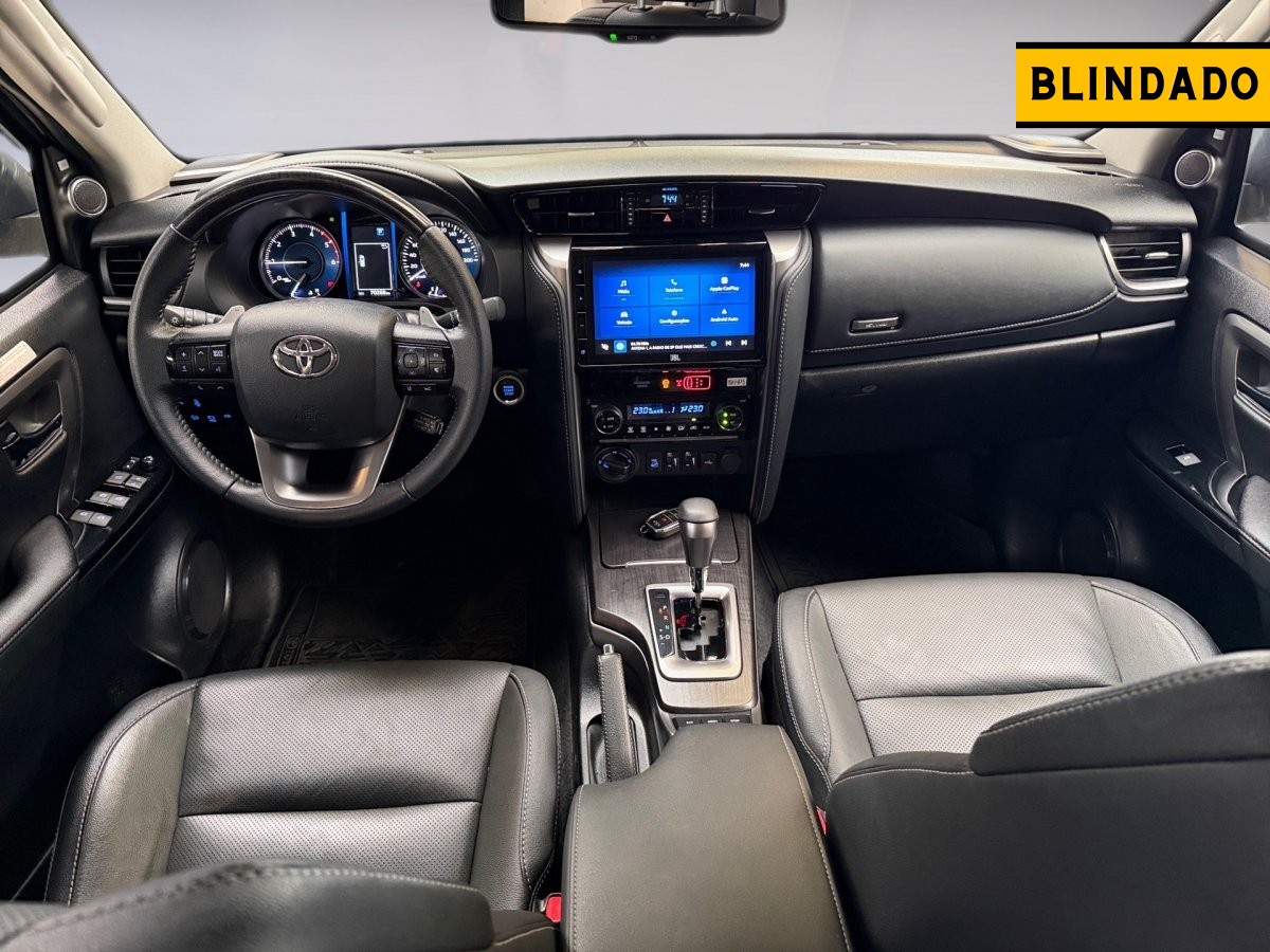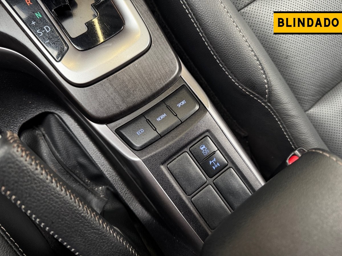 A Toyota SW4 SRX Platinum 2024 é um SUV de 7 lugares equipado com motor 2.8L Turbodiesel (204 cv, 50,9 kgfm), câmbio automático de 6 marchas, tração 4x4 com reduzida e diferencial traseiro com bloqueio. Destaca-se pelo pacote de segurança, incluindo o sistema Toyota Safety Sense (frenagem autônoma, ACC), câmeras 360°, e design com rodas aro 18" exclusivas.